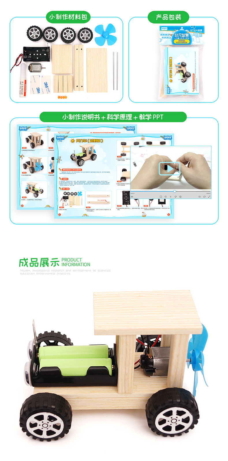 商品名称:能恩智慧风力汽车STEAM儿童物理科学实验材料DIY手工科学小制作小发明玩具元旦节礼物新年 风力车(越野版)